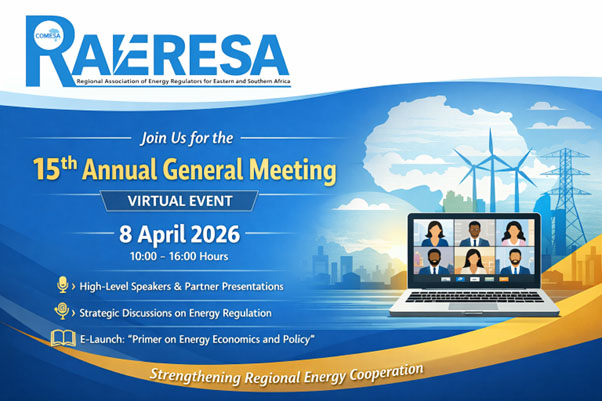 The Regional Association of Energy Regulators for Eastern and Southern Africa (RAERESA) will convene its 15th Annual General Meeting (AGM) on Wednesday, 8 April 2026, as a virtual meeting.